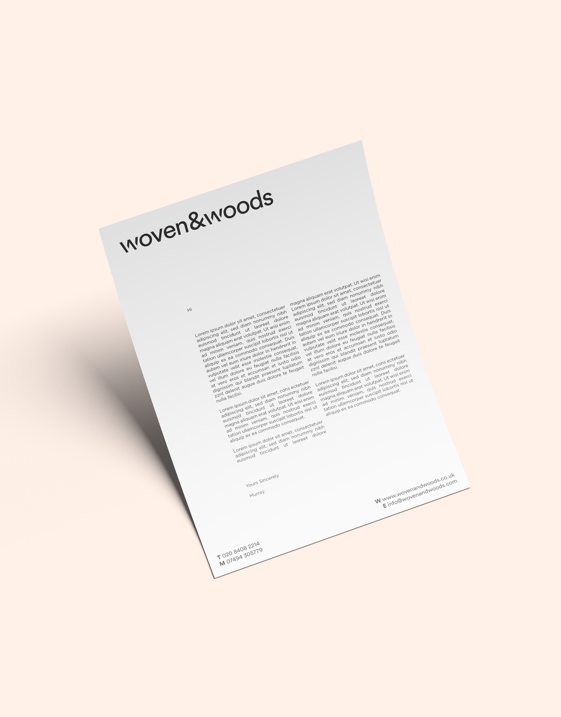 Woven and Woods is a boutique flooring specialist, looking for an identity that echoed the attention to detail, beautiful finish, and tailored approach in their products.